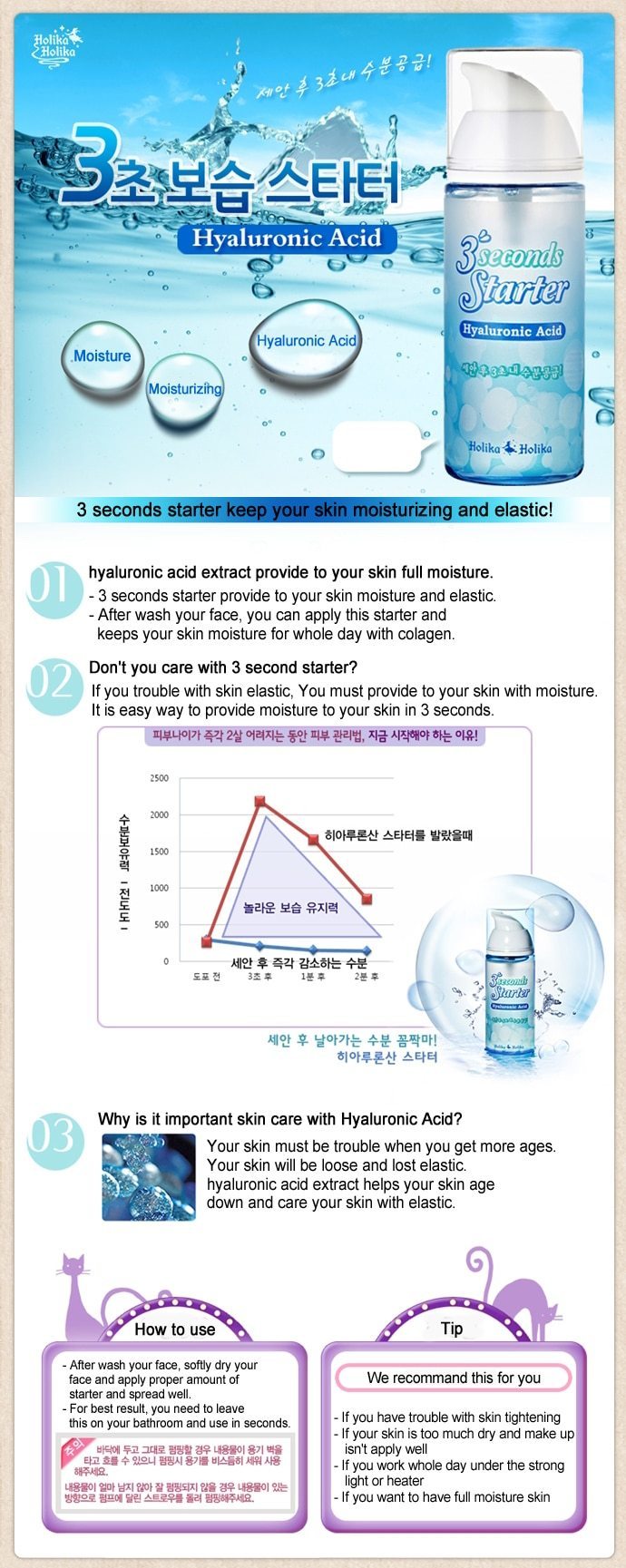 3. Complete your skin moisturizing with 3 seconds starter. *Hyaluronic Acid 1. Hyaluronic Acid extract provide to your skin full moisture.